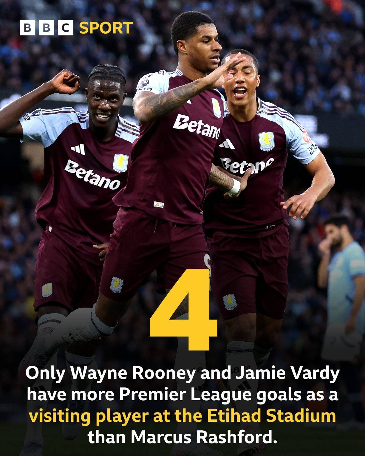 拉什福德在伊蒂哈德球场有着美好的回忆,他初出茅庐时,首场曼市德比就穿裆德米凯利斯,打入制胜入球。这场代表维拉对阵曼城的比赛,27岁的拉师傅同样表现不俗,周二再得一分后他已经为新东家打入4球并助攻8次。他4次作为客队球员在曼城主场破门,仅次于鲁尼和瓦尔迪。