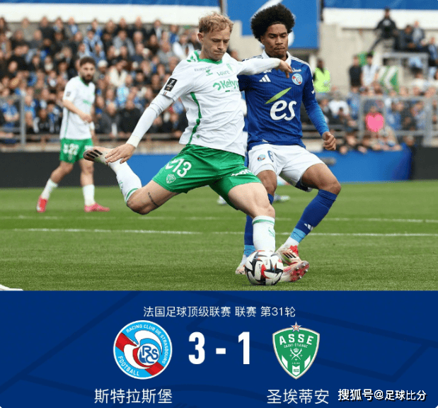 最终,全场比赛结束,斯特拉斯堡主场3-1战胜圣埃蒂安。